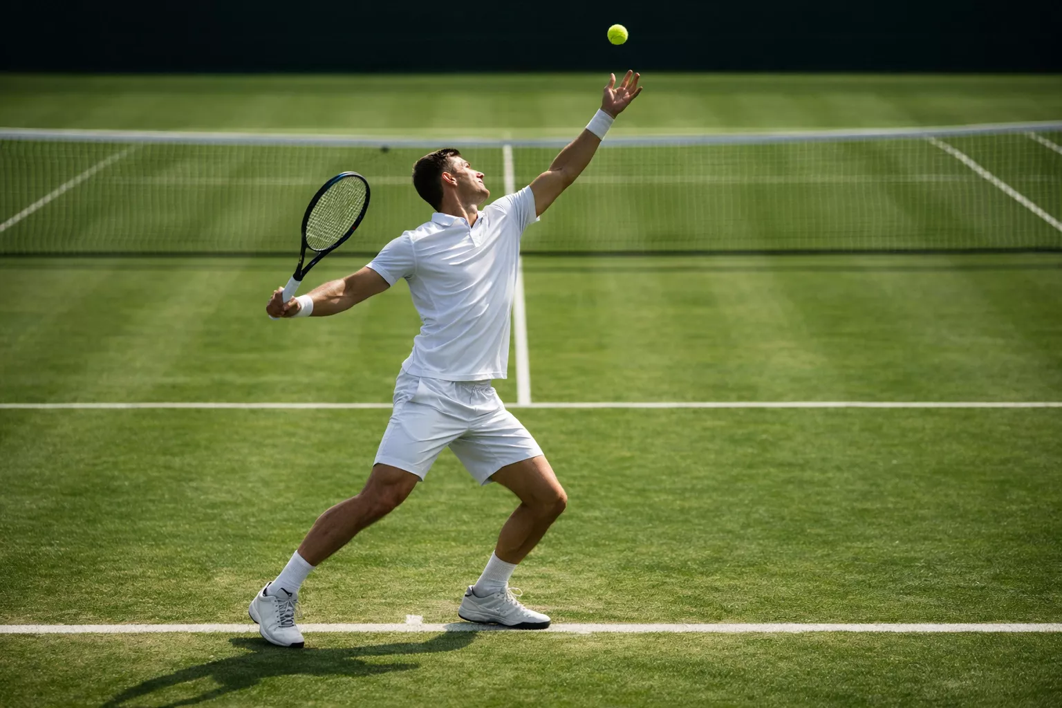 El saque representa el golpe más decisivo sobre hierba. Un servicio potente y bien colocado resulta prácticamente indevolvible cuando el bote bajo impide al restador preparar un golpe agresivo. Los grandes sacadores dominan estadísticamente los torneos de césped: ganan un porcentaje desproporcionado de puntos con su primer servicio y minimizan las oportunidades de rotura que enfrentan.